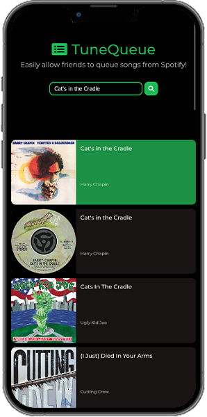 Description: TuneQueue allows friends to queue their favorite songs to your spotify account. This can be used in a group setting where everyone may not have their own spotify account, or perhaps you do not want individuals to keep asking you to play a song. With TuneQueue, your friends can queue songs using their own device.